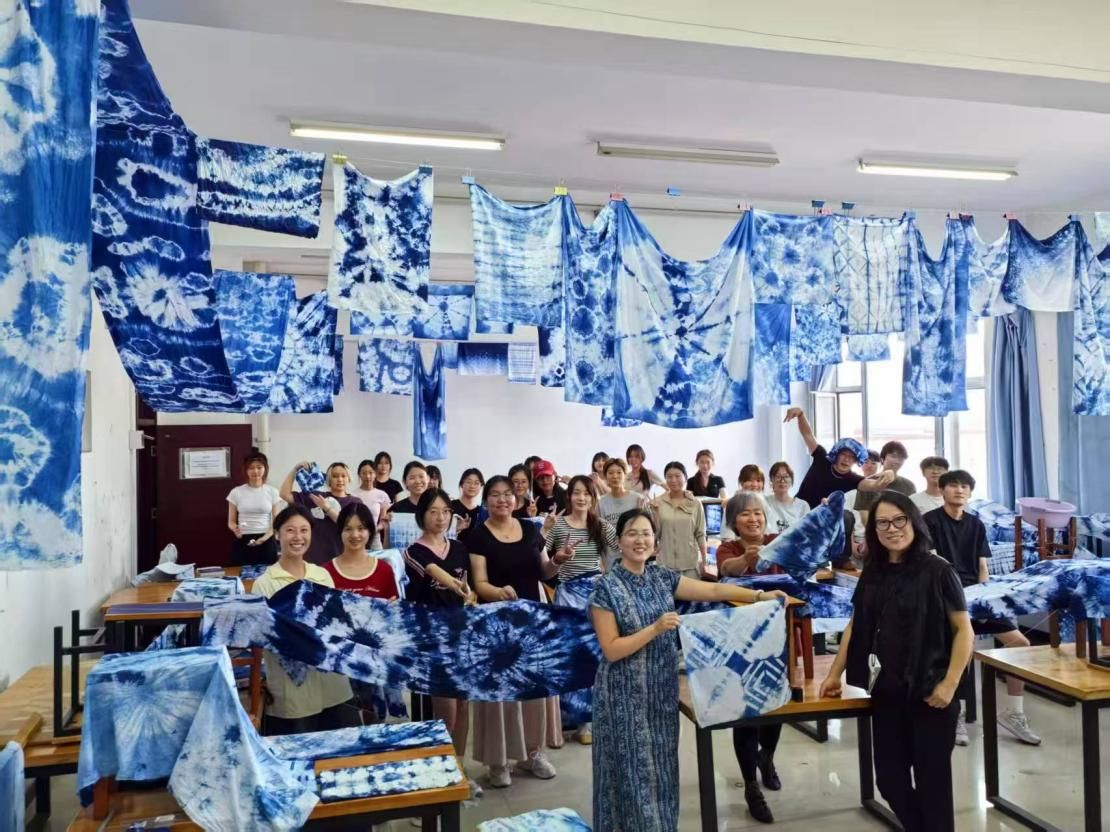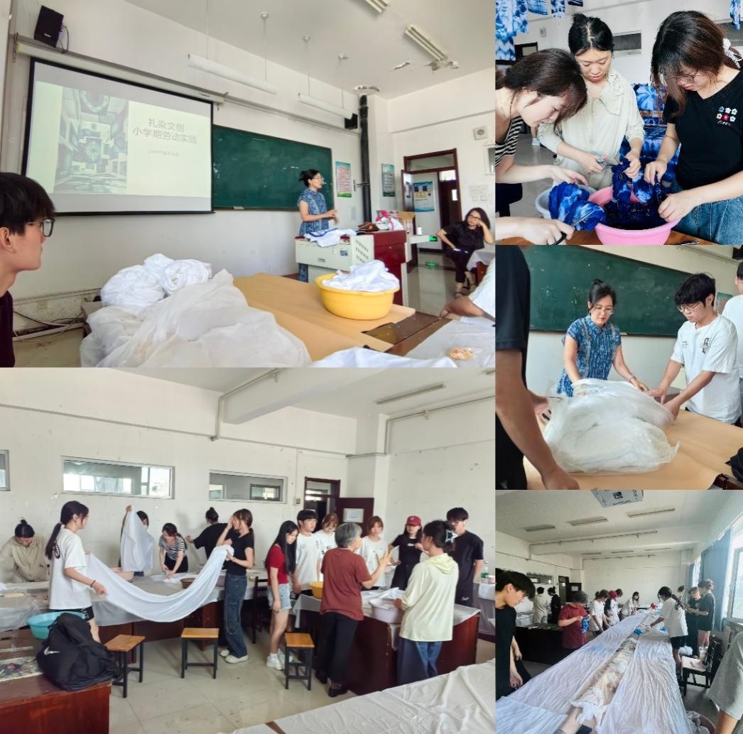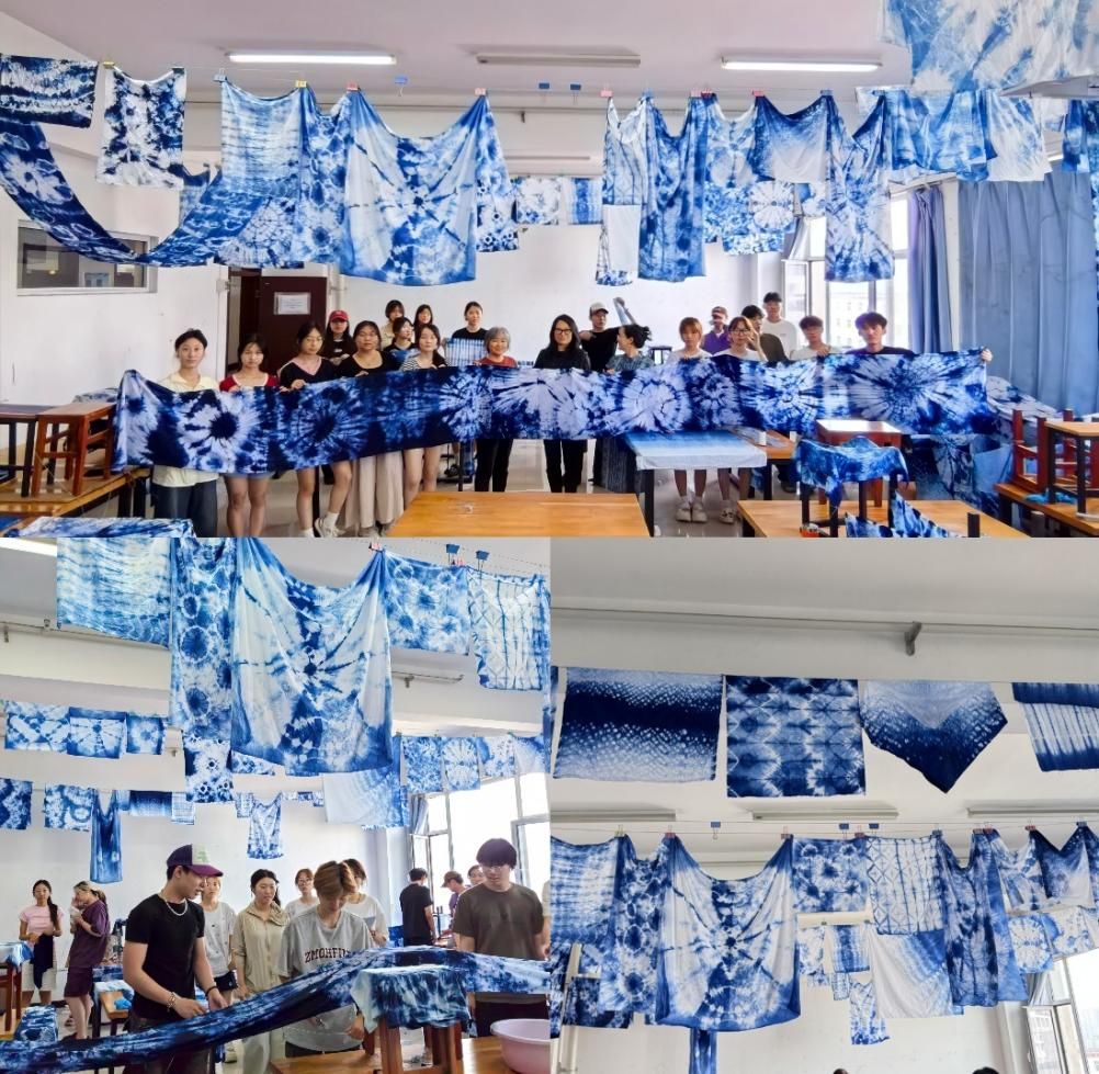 2023级视觉传达设计班在孙绪静、刘永秀、胡潇泓三位老师的带领下,开展了扎染艺术体验的实践活动。