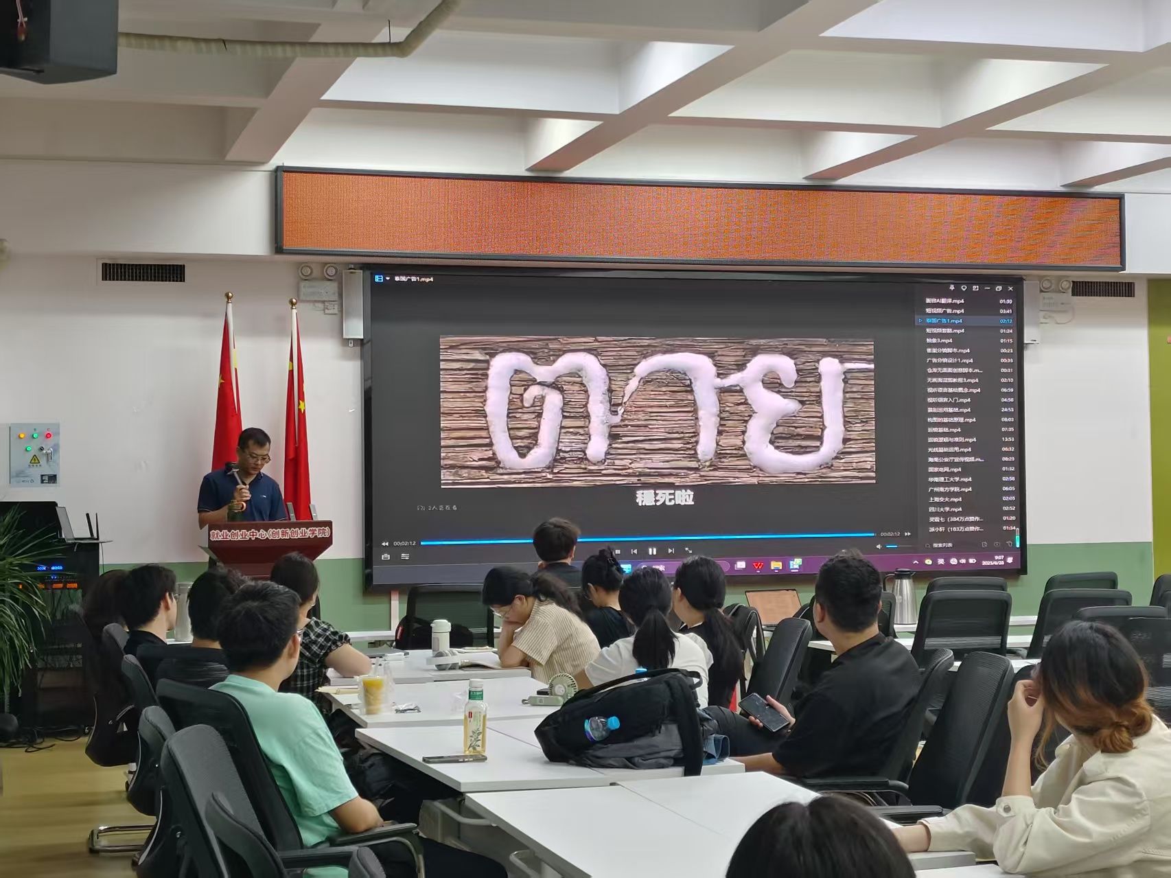 在指导问答环节,同学们就“AI工具在脚本创作中的应用”“短视频行业就业前景”等问题与陈老师进行了深入交流。陈老师就同学们拍摄的短视频作品给出指导与修改意见。这一实践环节旨在引导同学们从模仿中学习,在实操中掌握短视频制作的精髓。
